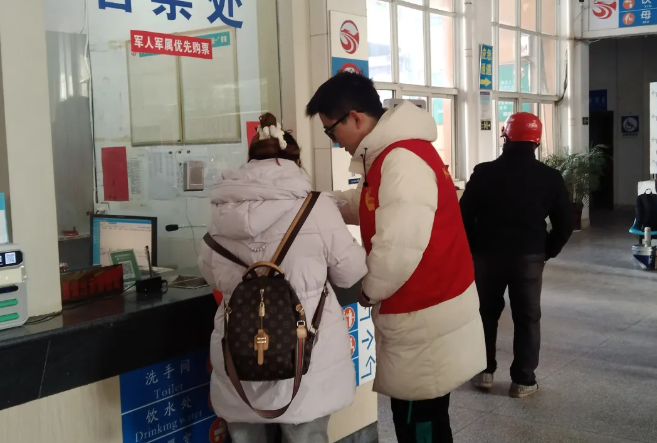 春運期間,含山中心客運站內(nèi),“紅馬甲”身影處處可見。志愿服務(wù)隊的隊員們堅守崗位,以熱情與細致為旅客提供暖